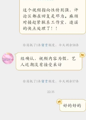 中国娱乐网讯 www.yule.com.cn 10日,为后援会回应邓为被“业内爆小牌大耍”传闻,表示:“视频内容为假,艺人近期没有接受采访。”据悉,近日有视频爆料,疑似演员邓为采访耍大牌,工作迟到、讲话言之无物、回答问题不耐烦等。