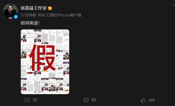 对此,张嘉益工作室发文否认离婚传闻:“假得离谱!”“谣言不可信,更不可传!”