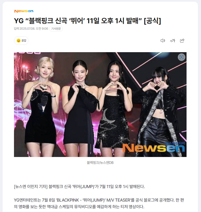 中国娱乐网讯 www.yule.com.cn 据韩媒报道,BLACKPINK新曲《JUMP》将于7月11日12点(北京时间)正式发行。