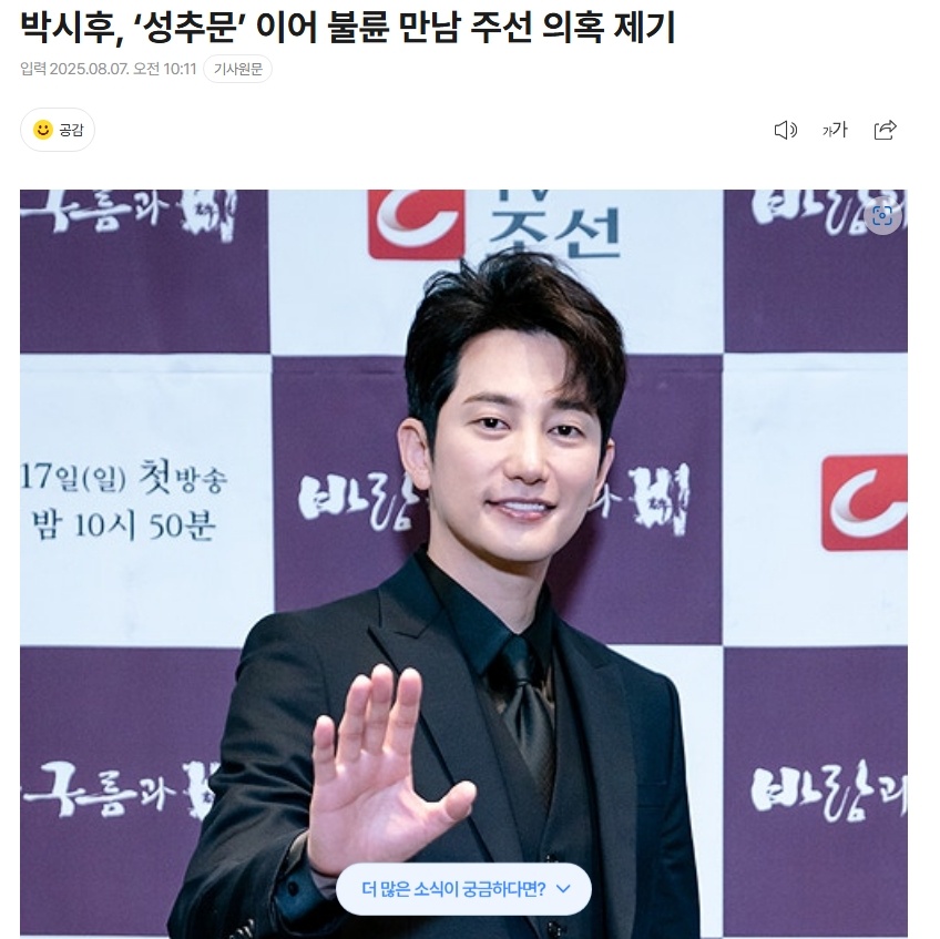 中国娱乐网讯 www.yule.com.cn 韩媒消息表示,演员朴施厚因被指控牵线不伦恋引发争议。本月5日,网友A某在其社交平台发文控诉:"爽快人朴施厚啊,我家住UN Village时你天天喊我嫂子,结果从2020年开始就给黄某介绍女人...适可而止吧",同时公开了疑似其丈夫与朴施厚的部分短信记录。