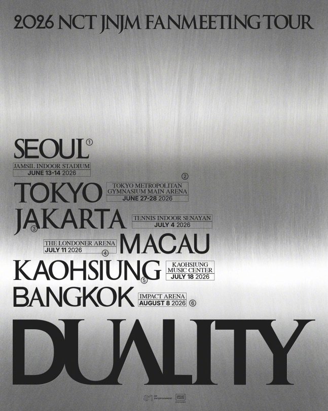 中国娱乐网讯 www.yule.com.cn NCT小分队NCT JNJM宣布开启首次粉丝见面会巡演。组合将于6月13日至14日以首尔站为起点,在亚洲6大城市展开《2026 NCT JNJM FANMEETING TOUR “DUALITY”》,与亚洲粉丝见面。