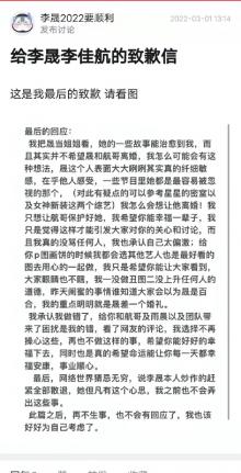 李晟黑粉发布致歉信 承认错误并表示此后不会再回应