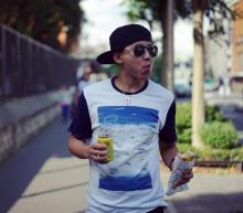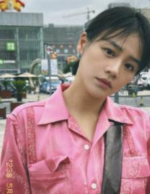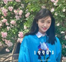 马思纯穿粉色T恤晒胶片随拍 手捧鲜花氧气感爆棚