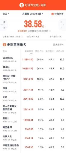 2023年2月总票房38.58亿 《流浪地球2》成月冠军