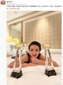 章子怡获澳门国际电影节两项大奖 开心与奖杯合照
