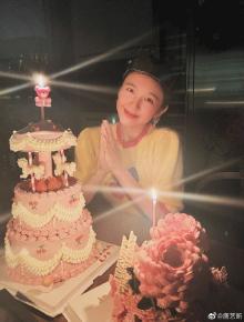唐艺昕晒庆生照 蛋糕粉嫩少女心满满