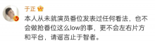 于正回复网友否认抢番位传闻:不会做这么low的事